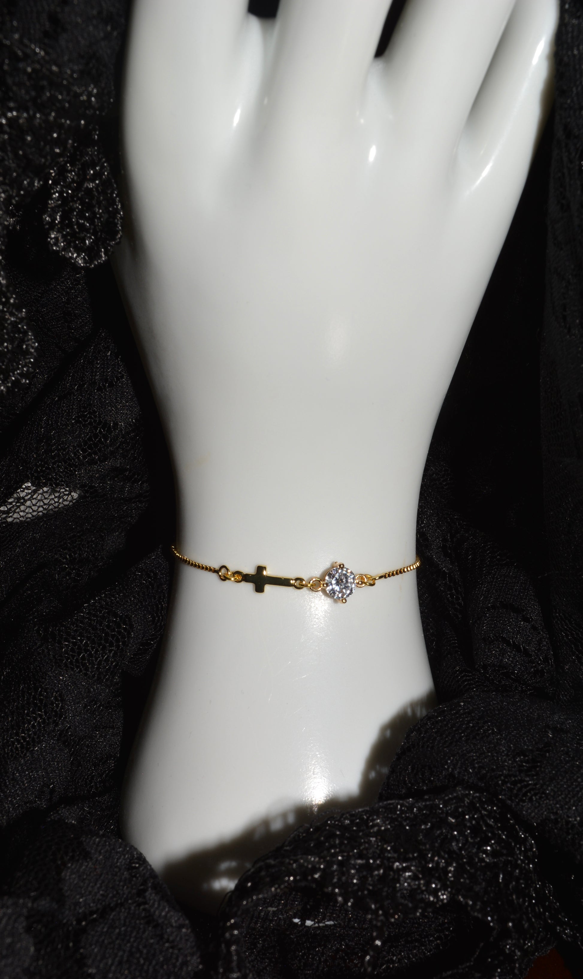 Delicate, radiant, and full of meaning, the Spark of Faith Bracelet is designed to symbolize light, hope, and devotion. This elegant gold chain features a dainty cross paired with a brilliant sparkling stone that catches the light beautifully with every movement.